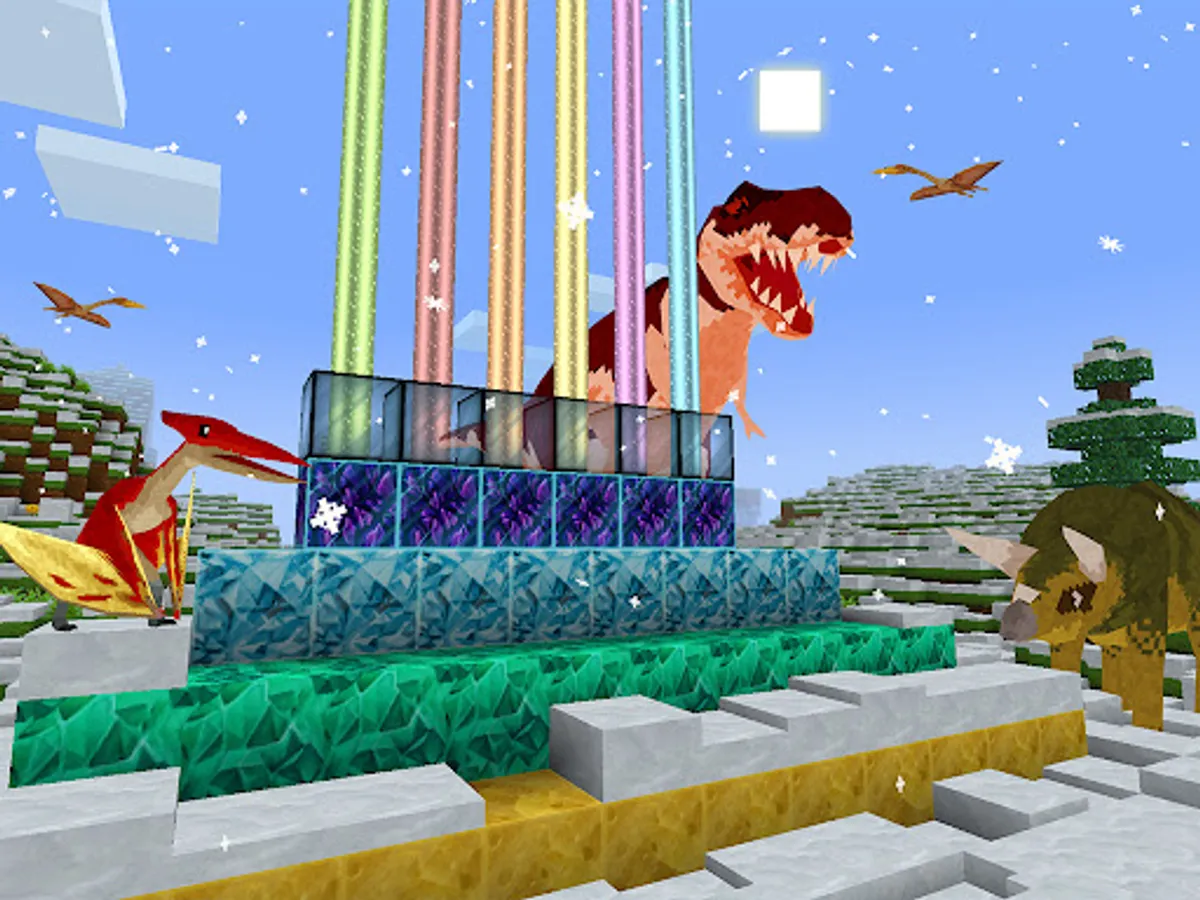 Crafting and Building Dino game is an innovative free building sandbox where you can play with your tamed pets, start an incredible construction and play multiplayer games.