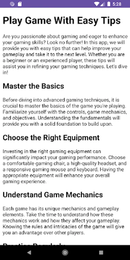 With Play Game With Easy Tips, you can unlock the true potential of your gaming skills. Whether you're looking to dominate the leaderboards or simply enjoy games at a higher level, this app will empower you with the knowledge and strategies to overcome challenges and achieve success.