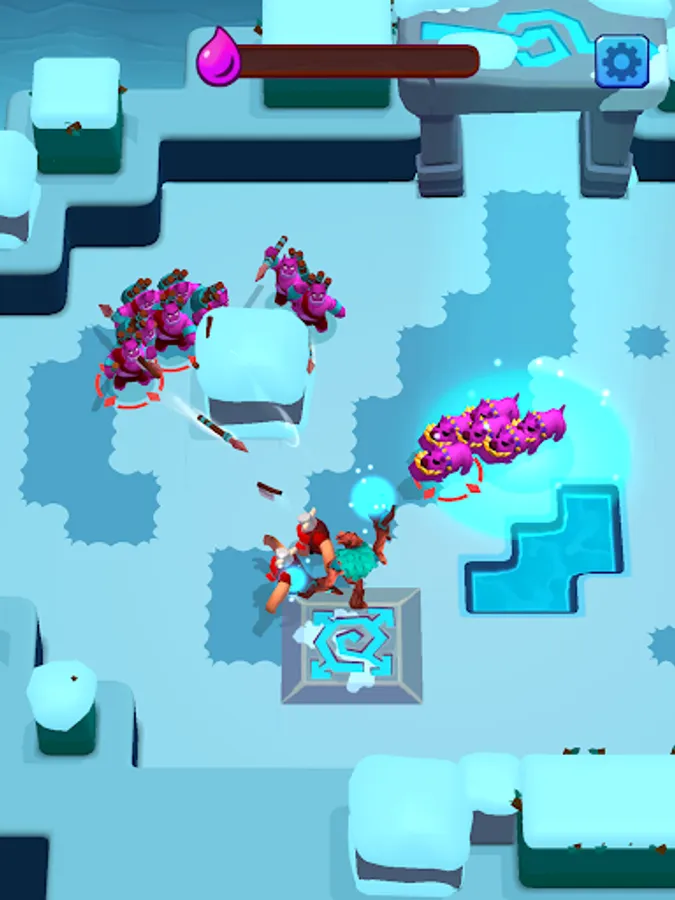 Try heroes with different roles: build unique group combinations to discover the gameplay variability and feel the fun to the max. You have an archer, ice wizard, hammerer, and others vs. bulls, necromancers, and hounds. Use axe and other awesome weapons to defeat them and go to the next level.