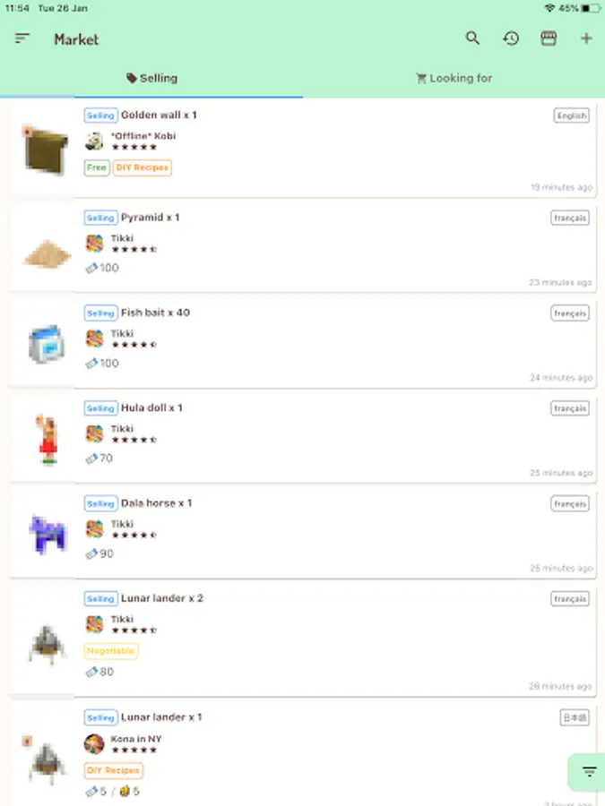 Exchange your items / artworks / villagers / fossils / cd ablum / tickets / bells with other Animal Crossing players.