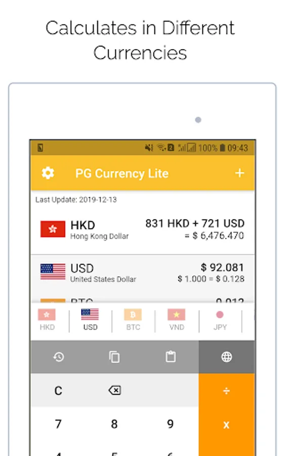 - Calculates in Different Currencies at the same time