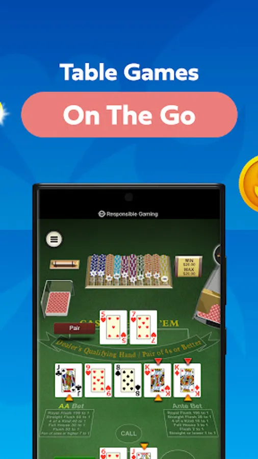 Play the ever-growing collection of slots and table games, featuring Live Dealer Table and Slot games, available on casino.