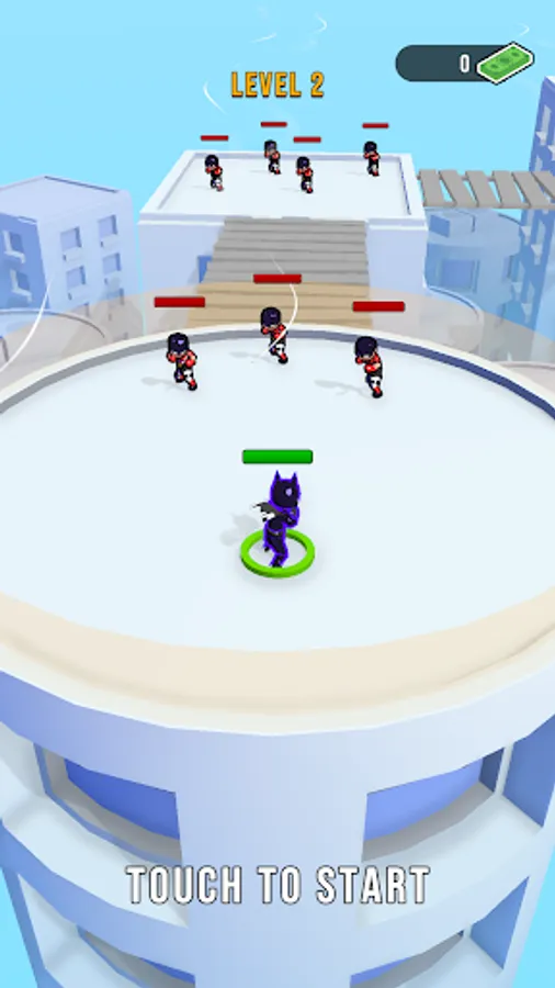 Put your cap on and hope into the arena. How many perfect combats can you perform ? Move around to aim your enemies and release to take them down one by one. A new style of battle is awaiting . Are you ready to enter the fight club?