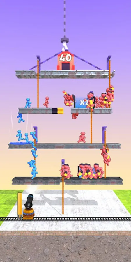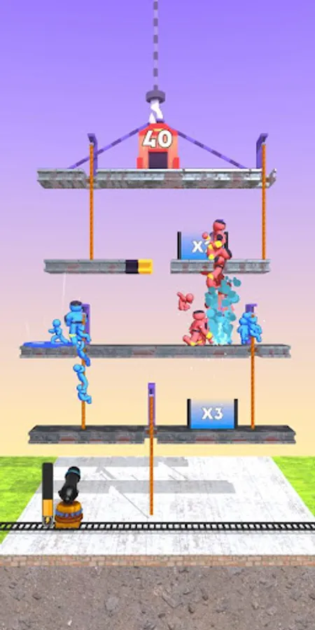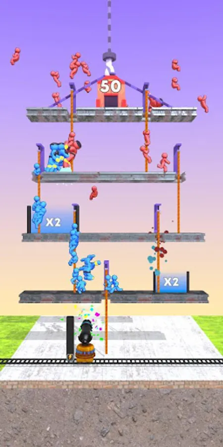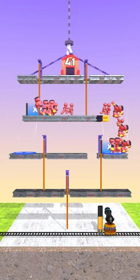 Launch your troops and fight the enemies as you progress through the floors to reach the top and destroy the enemy base.