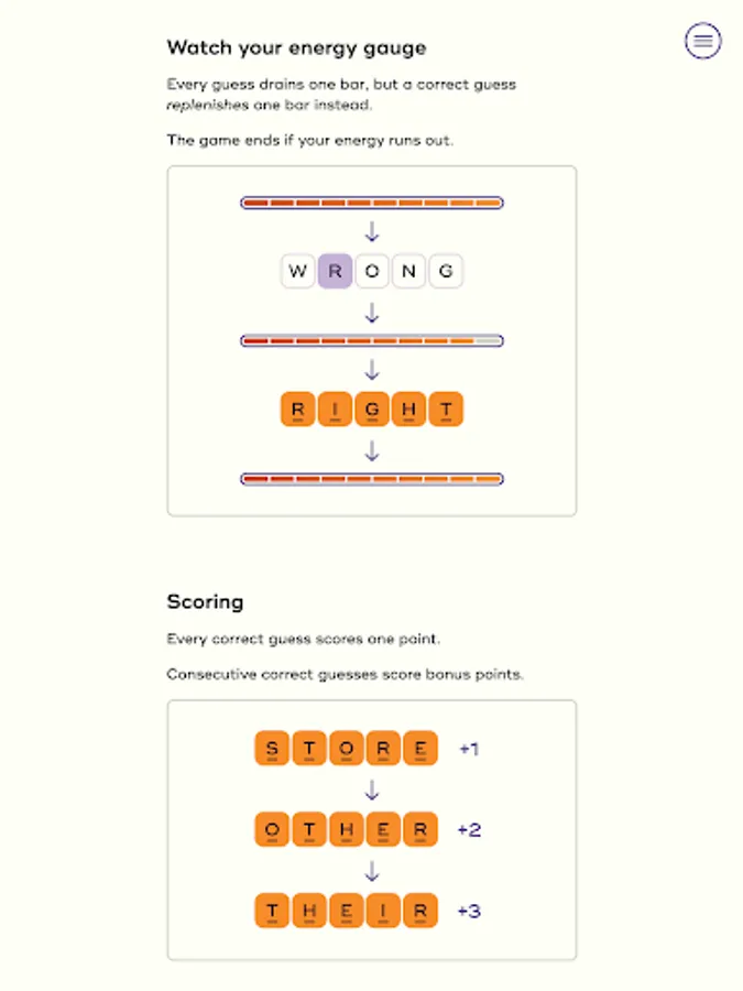 Watch your energy meter! Every guess drains energy, but correct guesses replenish it instead.