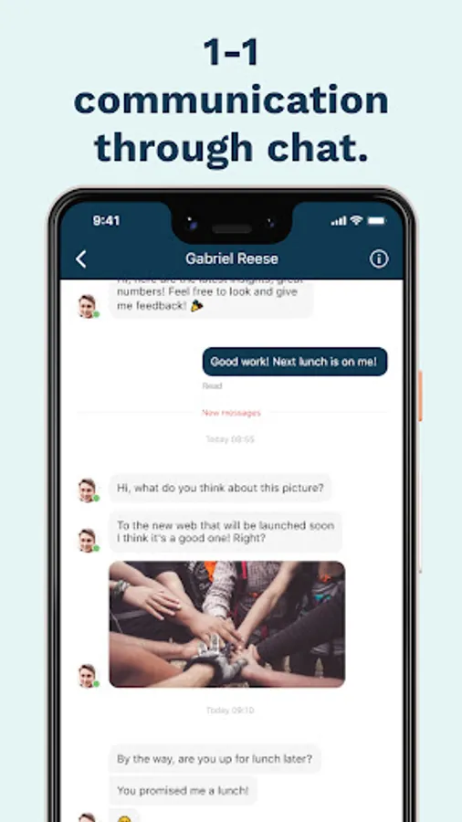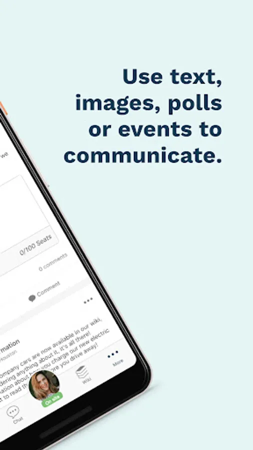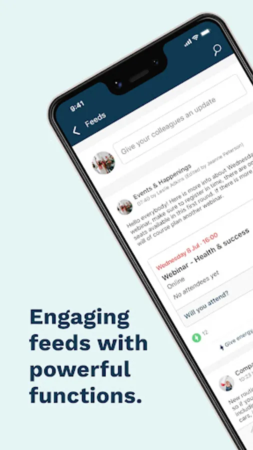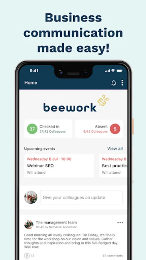The app offers you and your workplace many benefits. Its functions include an information feed, events, chat and availability. These provide the basis for everyone to improve their internal collaboration and networking.
