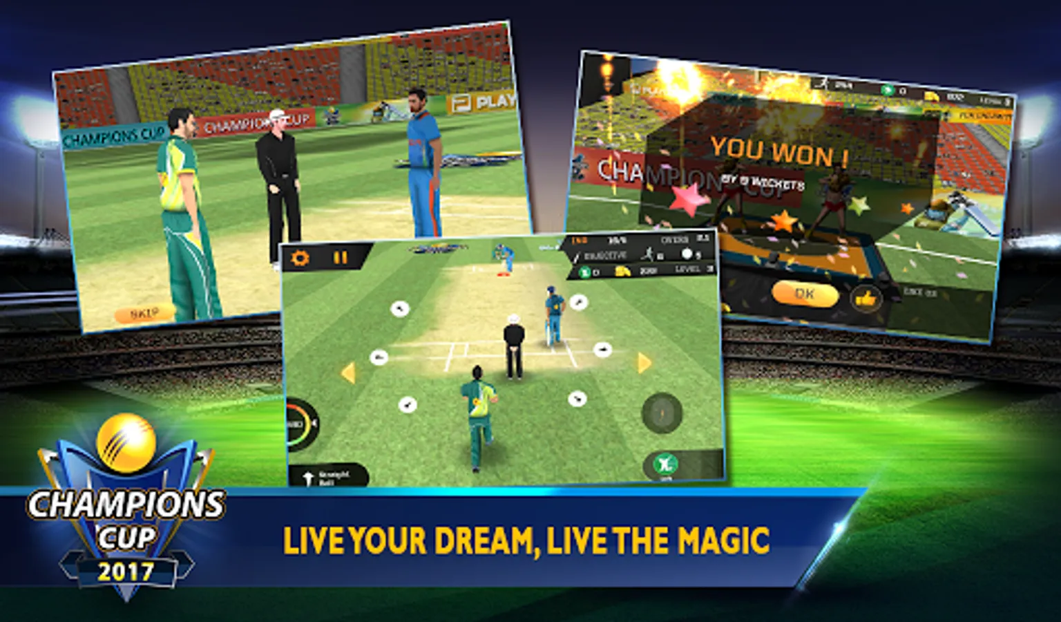 Cricket Champions Trophy 2017 is not an easy title to win. Come experience the top rated cricket game on mobile phone and play to be the world champion for 2017. Download this for best cricket game experience in 3D. Play with 8 international teams in 4 different game modes in up to 50 overs match to become the ultimate cricket champion. Feel the stadium come alive with stunning graphics and real-life animations as you hit massive sixes and bowl out legendary batsmen.
