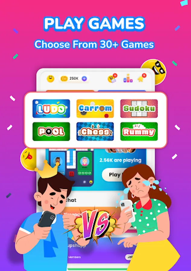 From childhood staples (like Snakes & Ladders, Tic-Tac Toe, Ludo, Scrabble and Draw & Guess) to college favourites (Carrom, Pool, HangMan, WordSearch, Bingo, Tetris, Teen-Patti, Rummy & Poker), there is something for everyone.