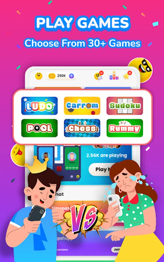 Add up to 12 friends live on video call while playing games. More the banter, more the fun.โฏ