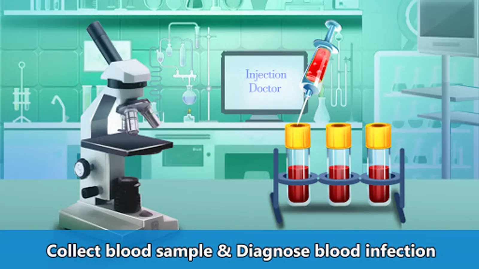 * Collect blood sample and test it with a microscope in surgery simulator games.