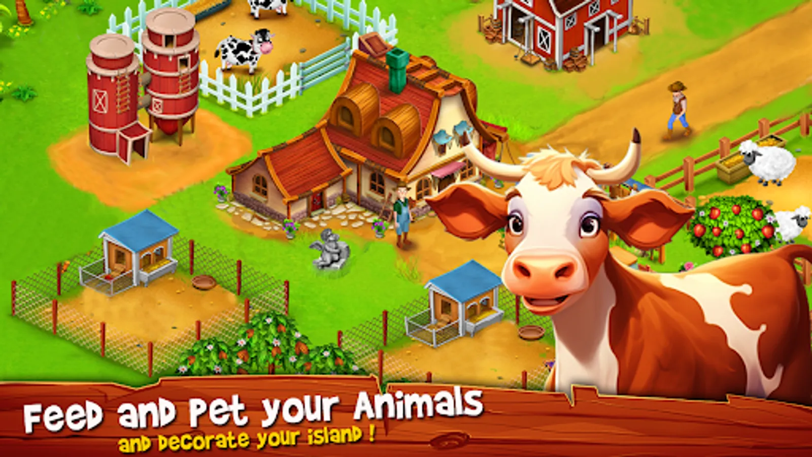 Enjoy the world of farming and cattle raising in Paradise Farm Island. Paradise Farm Island is an offline village farming game where you have to work as country side farmer in paradise island bay who work on lush green big farm & farmland. Do everything from farming, harvesting in your lush big farmland, cultivate and harvest the fresh crops like wheat, corn, coffee, tomato, kiwi & strawberry in village farm game. Raise cute frenzy animals like chickens, goats and cows, do farming, harvest diverse fresh crops in village big farm game to make your Paradise Farm Island game a success! Unleash your green side in Paradise Farm Island game where fun never ends, work as a farmer in village, do harvest, farming, raise poultry animals, manage dairy farms animals or livestock like goats, chickens, and cows in offline farming game. Take care of your paradise farm, harvest fresh crops in your farm to produce the healthiest & fresh food ingredients in offline farming game. Then sell your produce to a nearby city via delivery truck, fulfill orders and expand your farm village in this offline farming game. Paradise Farm Island is a virtual farming simulator game, in which you will be experienced from a farmer, a chef moreover a businessman. Uncover the mysteries of your farm paradise island, find all the bay farm game hidden treasure & start writing your own village farm game!