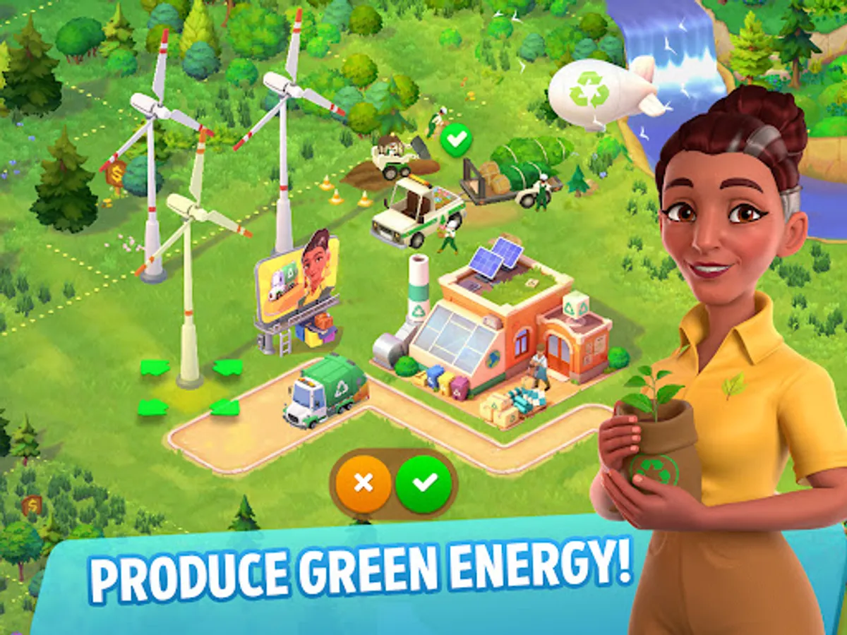 ⭐ Enter a better future with energy-saving farm city technologies, garbage sorting, and clean energy sources.♻️