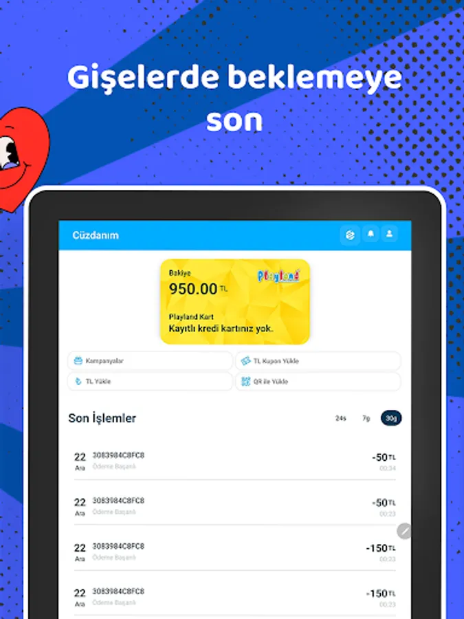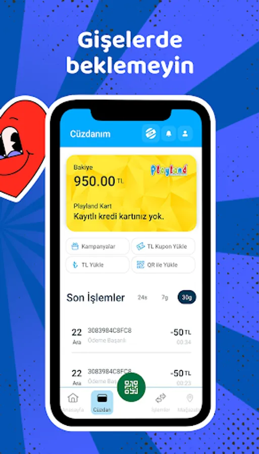 Control your children's movements on the mobile application in playgrounds and prevent children from playing games that may be harmful to their development with restrictive child profiles. Pay quickly with QR code and have many more privileges with Playland application
