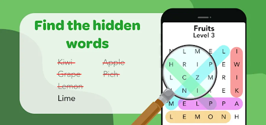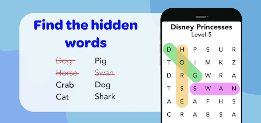 * Earn extra hints by finding hidden words!