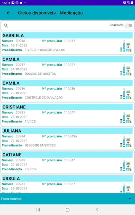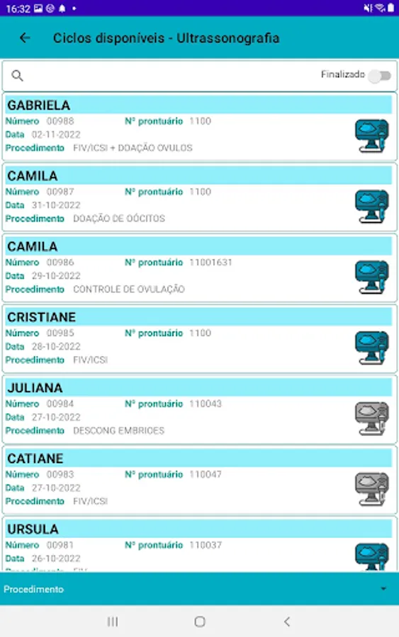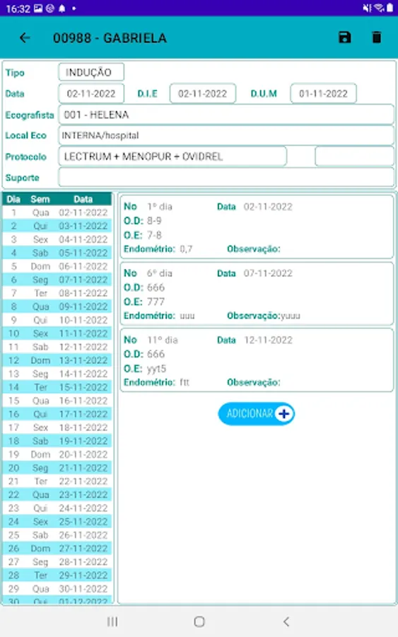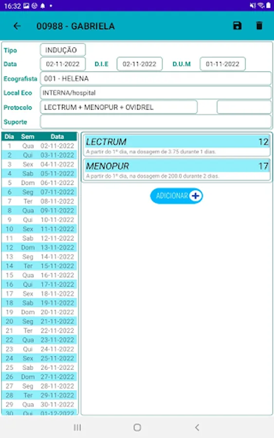 Module for entering drug information and cycle ultrasound results