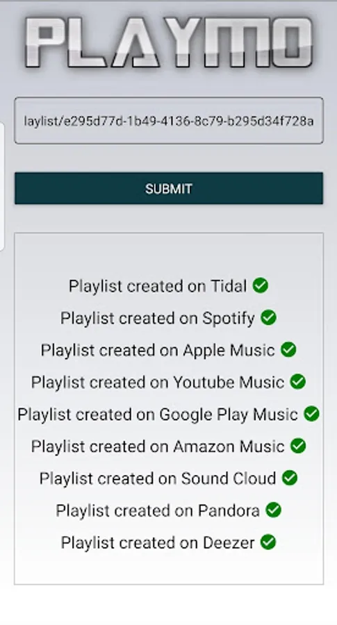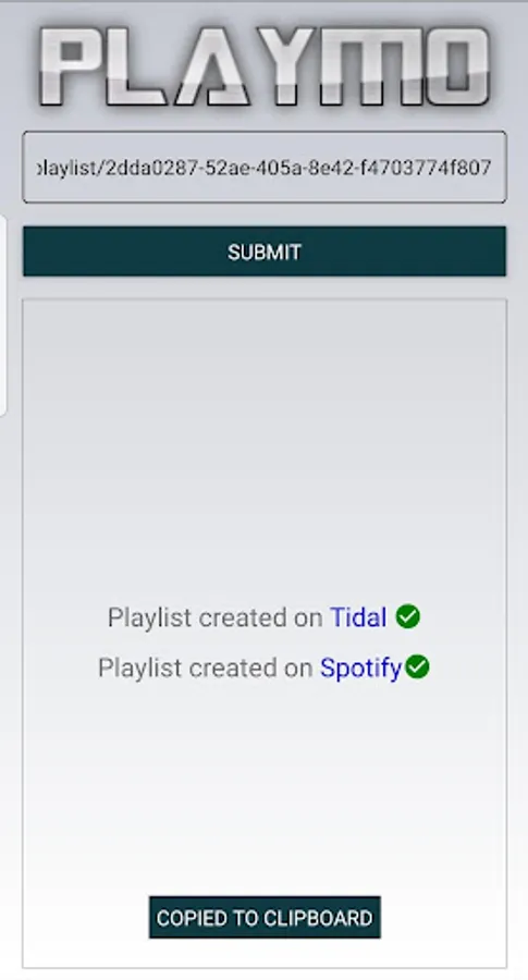 PlayMo lets you share your music playlists with the people you care about in a matter of seconds regardless of whatever music streaming platform you or them are using. Just copy a link from your favourite music streaming app and they will be able to hear your heart on whatever music streaming platform they're using.