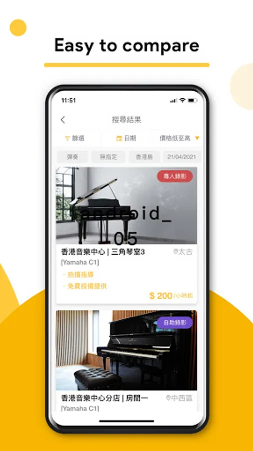 Through Music Bubble, not only can you search the venues by regions just by one step, you can also find the one that caters your needs at the best price by filtering the categories of your searching. By a few clicks, you will find the music room that is exactly what you are looking for! No more back-and-forth comparison is needed!