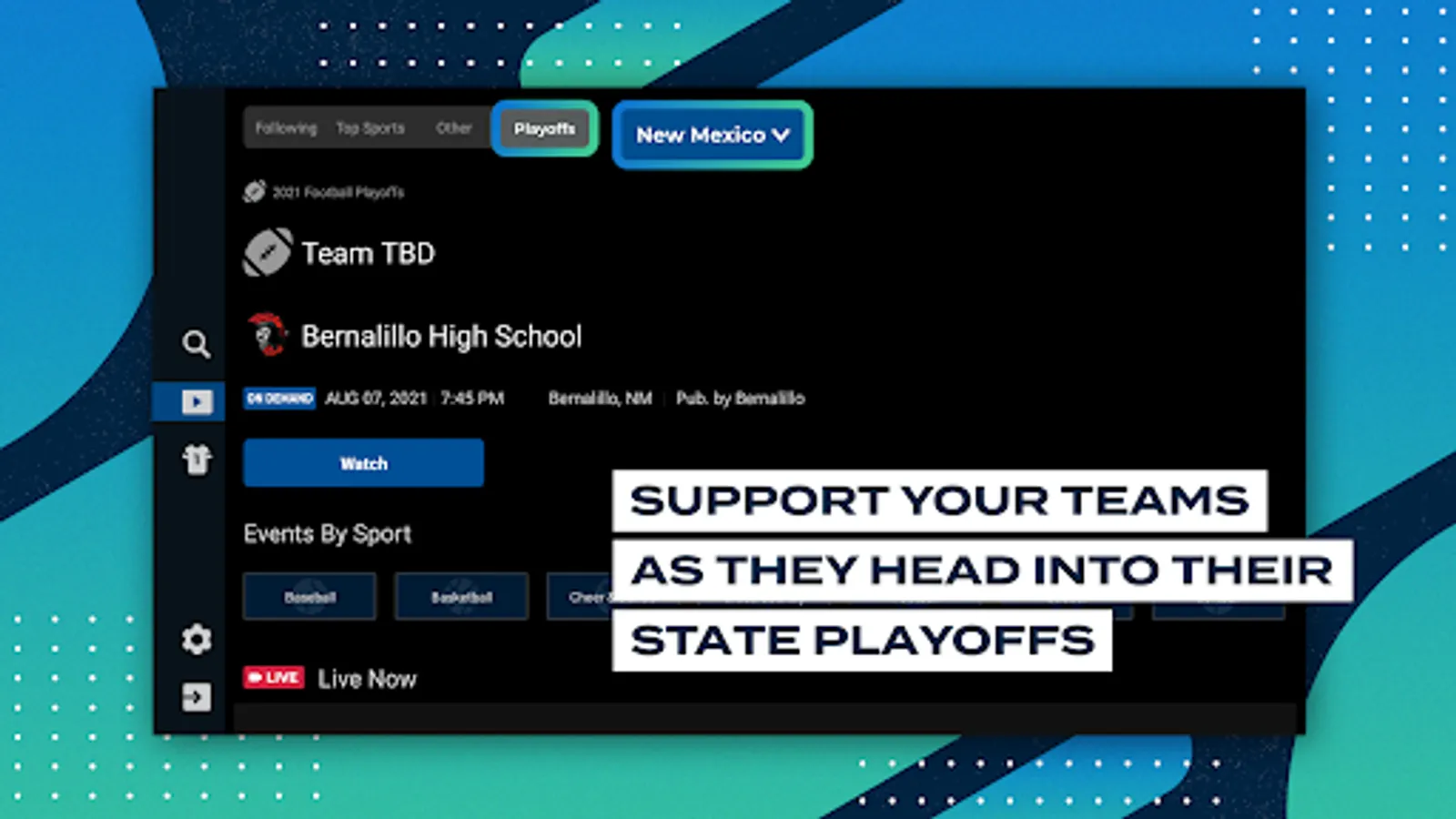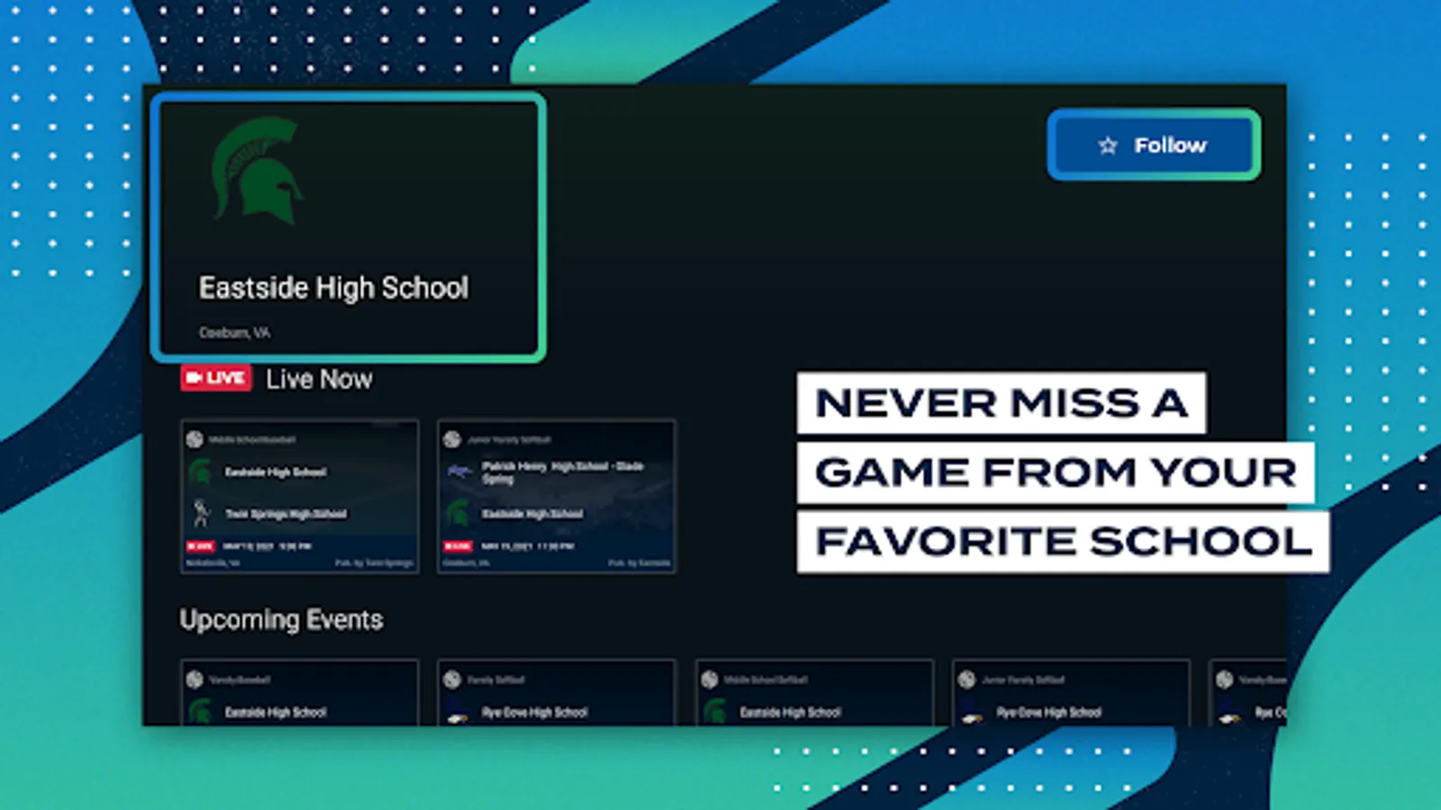 Stream Live, Follow Your High School, and Watch Regular Season and Postseason Games.
