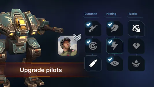 In offline and PvP modes, you'll face a variety of enemies and engage in intense battles where each turn counts. Your tactics will be crucial to achieving victory, so plan your attacks carefully and keep your enemies in your sights. Collect the most powerful mechs for every mission and equip them with the right weapons to test in real battles. The more you win, the more you can upgrade your combat arsenal!