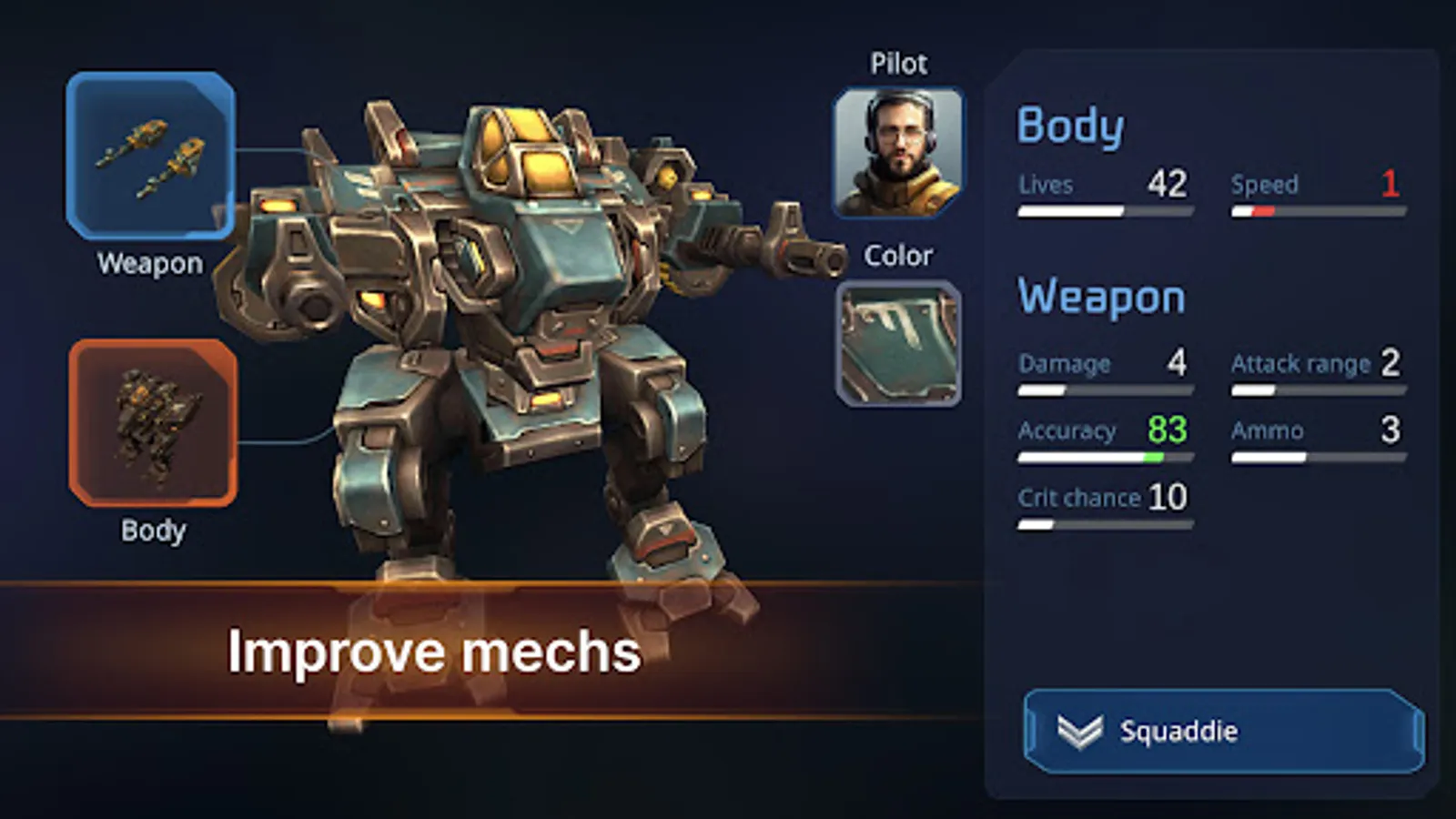 Strategic turn based game. Create battle mech squad! Join the offline and pvp robot war.