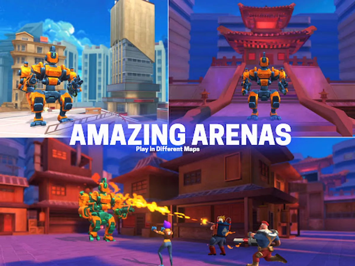 Spawn your favorite hero, mix your shooting skills and be responsible for the outcome of the war in various game modes: 1v1, Battle Royale, Deathmatch, Zombie Robots, and thrilling story mode.