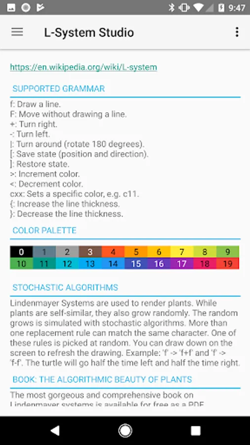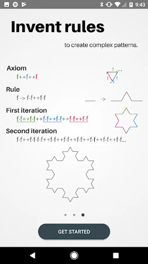 Lindenmayer Systems are the most accessible fractals to the lay person. Their underlying logic is as easy as Sudoku. This app takes a cool visual from the complicated math world and makes it fun to play around with. While other L-System Apps require complicated screens, this one lets you type and instantly preview the output. Create your own fractal, stamp your name on it, and share it with your friends. There are still plenty of L-Systems waiting to be discovered. You are standing at the edge of a frontier!