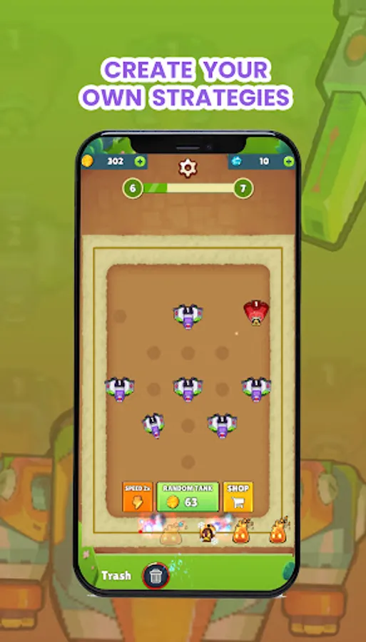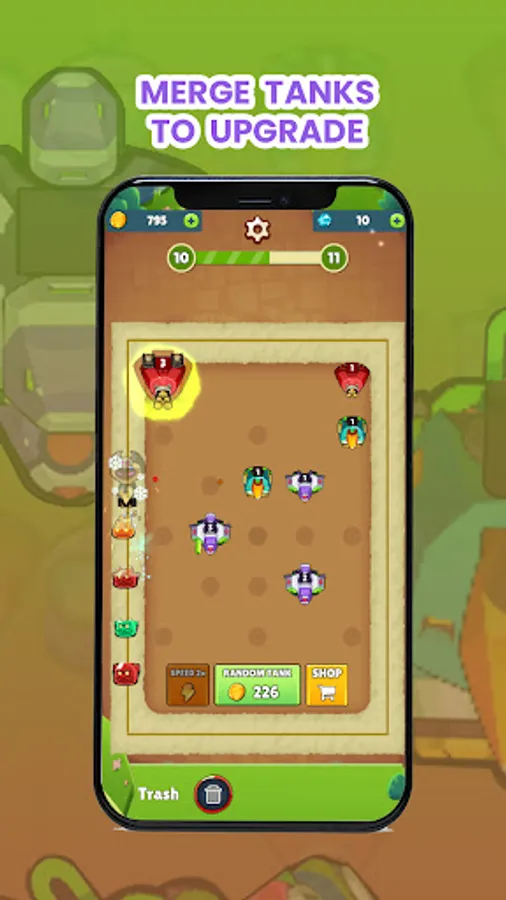 All battle defence games in Merge Tank Defence Idle Game come with challenging logical brain puzzles. Solving every puzzle will put you on the next level, where there will be more exciting brain teasers waiting for you.