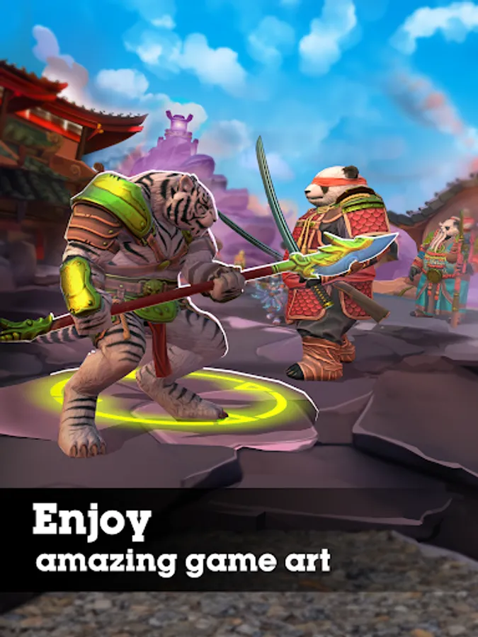 Take part in the legendary RPG multiplayer battle of the Dragon Champions against demon warriors and the mysterious Reflections. Recruit warriors and lead an action squad of fantastic heroes to battle and determine the fate of the war in the world of Korador using the best combat strategy. Humans, orcs, elves, pandas, goblins, beastmen, dwarves, halfpigs or demon warriors are some of the warlords to choose from to create the most powerful squad! Assemble and upgrade your epic team and save the medieval world of Korador, become the strongest champion in the Arena, and learn the secret of the immortal dragon protectors in this role-playing quest.