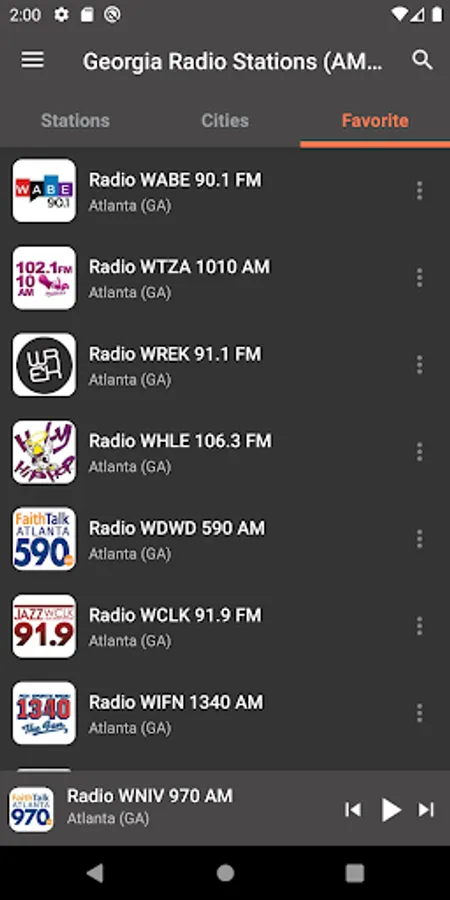 "3ABN Radio 94.5 FM", "Radio WHLE 106.3 FM", "Radio WKCN HD3 106.5 FM", "Radio WSB 750 AM", "Radio WNEX 100.9 FM", "Radio WNNX 100.5 FM", "Radio WCLK 91.9 FM", "Radio WGAU 98.7 FM 1340 AM", "Radio WEAS 93.1 FM", "Radio WFXE 104.9 FM", "Radio WDEN Country 99.1 FM", "Radio WNIV 970 AM", "Radio WDWD 590 AM", "Radio WCNN 680 AM 93.7 FM", "Radio WAYR 90.7 FM", "Radio WKHX 101.5 FM", "Radio WFXA 103.1 FM", "Radio WWQA 90.7 FM", "Radio WWWQ Q99 99.7 FM", "Radio Gospel WYZE 1480 AM", "Radio WSTR HD3 94.1 FM", "Radio WGKA 920 AM", "Radio WMCG 104.9 FM", "Radio WWLD 102.3 FM", "Radio WRHQ 105.3 FM" and many other radio stations to listen to for free.
