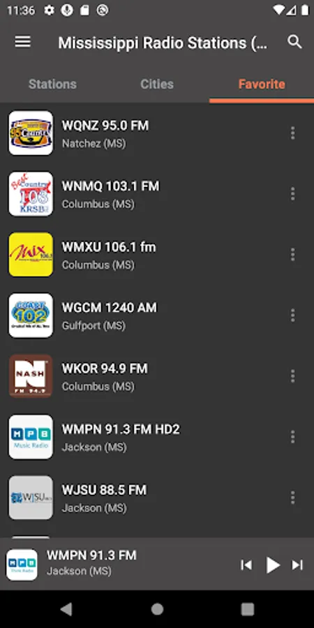 "WMPR 90.1 FM", "WGCM 1240 AM", "WKOR 94.9 FM", "WKXY 92.1 FM", "WZKX 107.9 FM", "WJSU 88.5 FM", "WSMS 99.9 FM", "WFMN SuperTalk 97.3 FM", "WMXU 106.1 fm", "WMPN 91.3 FM HD2", "WMXI 98.1 FM", "WQNZ 95.0 FM", "WMPN 91.3 FM", "WMSV 91.1 FM", "WJZD 94.5 FM", "WUSM 88.5 FM", "WYAB 103.9 FM", "WMBU 89.1 FM", "WZNO 105.9 FM", "WXYK 105.9 FM", "WNMQ 103.1 FM" and many other radio stations to listen to for free.