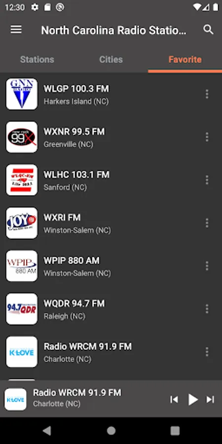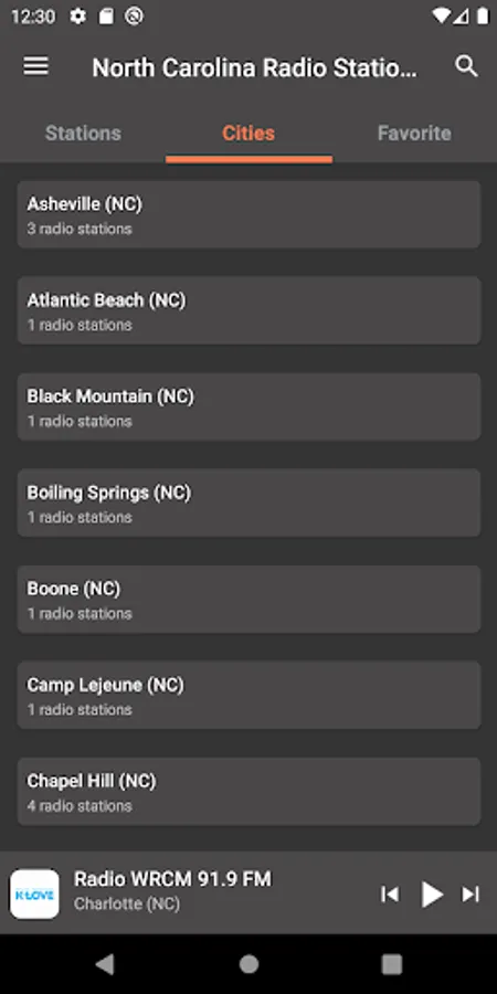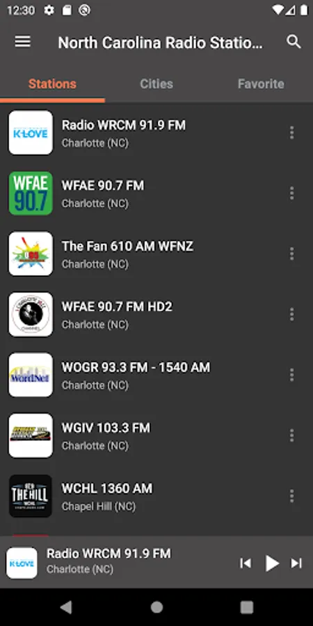 "WFAE 90.7 FM", "WMIT 106.9 FM", "WBBB 96.1 FM", "WLHC 103.1 FMWNCT 107.9 FM", "WMGU 106.9 FM", "WMNX 97.3 FM", "WRES 100.7 FM", "WOGR 93.3 FM - 1540 AM", "WPTF 680 AM", "WNCW 88.7 FM", "KZL 107.5 FM", "WKXS 94.5 FM", "WPAQ 740 AM", "The Fan 610 AM WFNZ", "WZFX 99.1 FM", "WSGE 91.7 FM", "WPIP 880 AM", "WXNR 99.5 FM", "Radio Asheville 103.3 FM", "WCPE 89.7 FM", "WFDD 88.5 FM Channel 3", "Radio WRCM 91.9 FM", "WGNI 102.7 FM", "WRCQ 103.1 FM" and many other radio stations to listen to for free.