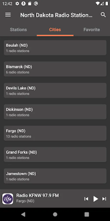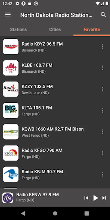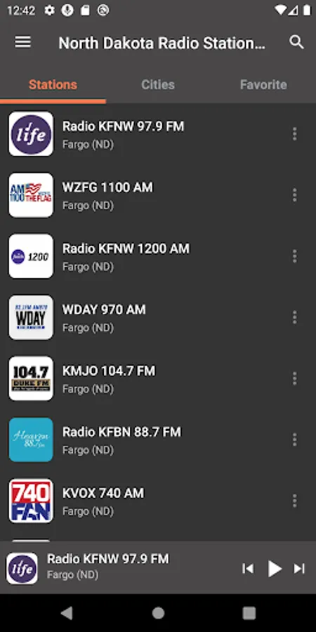 "Radio KFBN 88.7 FM", "Radio KFNW 97.9 FM", "KVOX 99.9 FM", "Radio KFNW 1200 AM", "KMJO 104.7 FM", "KNDR 104.7 FM", "Radio KBVB 95 FM", "KSJB 600 AM", "Radio KDIX 1230 AM", "KLBE 100.7 FM", "KZZY 103.5 FM", "KLXX 1270 AM", "KLTA 105.1 FM", "KUSB 103.3 FM", "Radio KRYE 94.7 FM", "Radio KACL 98.7 FM", "Radio KKCT 97.5 FM", "Radio KFGO 790 AM", "Radio KBYZ 96.5 FM", "KWTL 1370 AM", "KQWB 1660 AM 92.7 FM Bison", "WZFG 1100 AM", "KVOX 740 AM" and many other radio stations to listen to for free.