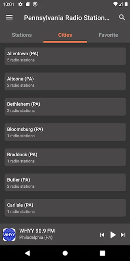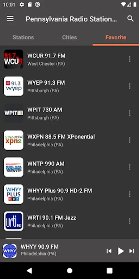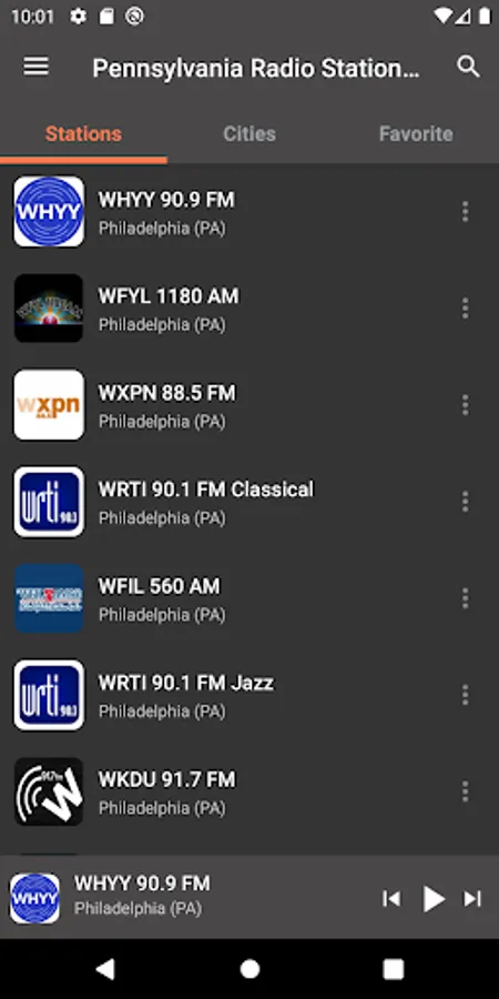 "WHYY 90.9 FM", "WXPN 88.5 FM XPonential", "WWRR 104.9 FM", "WXPN 88.5 FM", "WURD 900 AM", "WRRK Bob 96.9 FM", "WEZX 106.9 FM", "WRTI 90.1 FM Classical", "WNJC 1360 AM", "WEGH 107.3 FM", "WARM 103.3 FM", "WAMO 100.1 FM", "WRTI 90.1 FM Jazz", "KNRQ 103.7 FM", "WNTP 990 AM", "Rádio Mega 99.5 FM", "WHAT 1340 AM", "WFIL 560 AM", "WTZN 1310 AM", "WNAR 1250 AM", "WGRC 91.9 FM", "WDIY 88.1 FM", "VMFM 91.7 - Marywood University Radio", "WORD 101.5 FM", "KUR 88.3 FM" and many other radio stations to listen to for free.