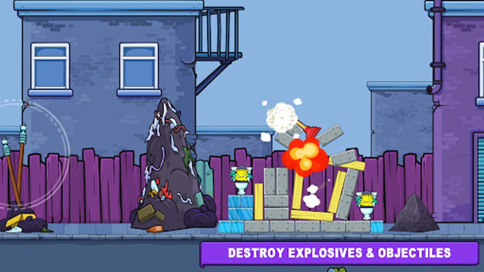 You have the opportunity to complete each level in several ways. Perhaps you want to destroy more objects around? No problem! Or maybe you want to throw your angry plunger with enough precision to hit multiple toilet monsters in one throw? The choice is yours.