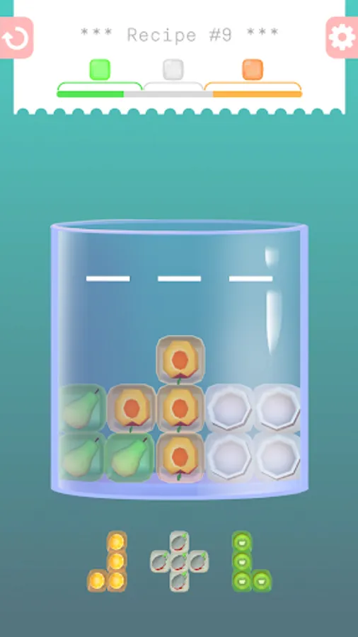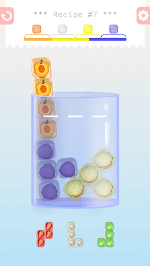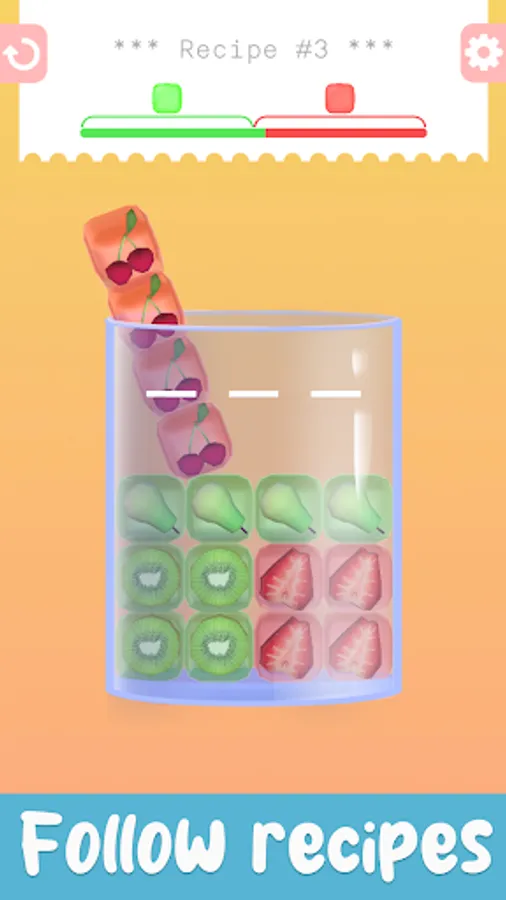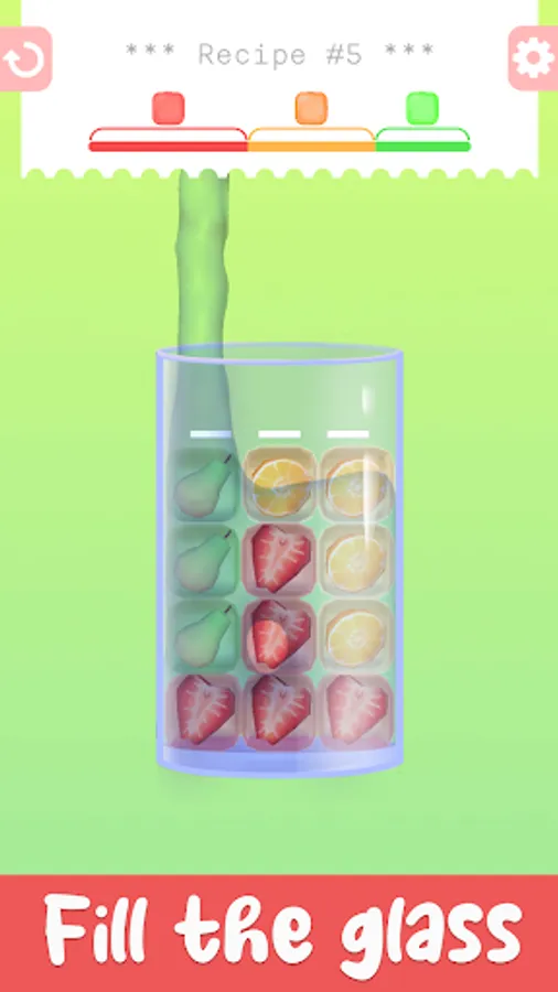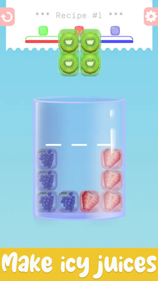 Follow the receipts to fill your glass with fruit ice blocks and make delicious ice-cold juice!