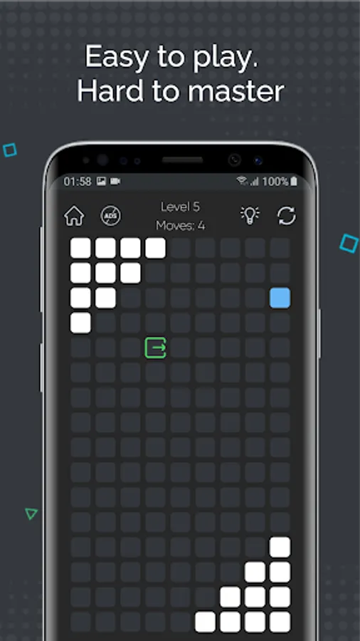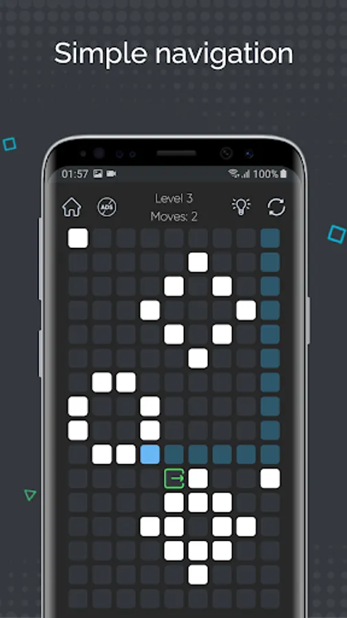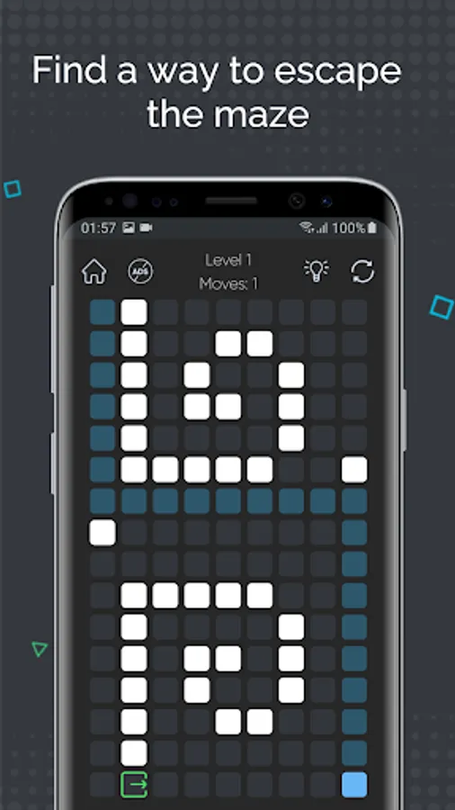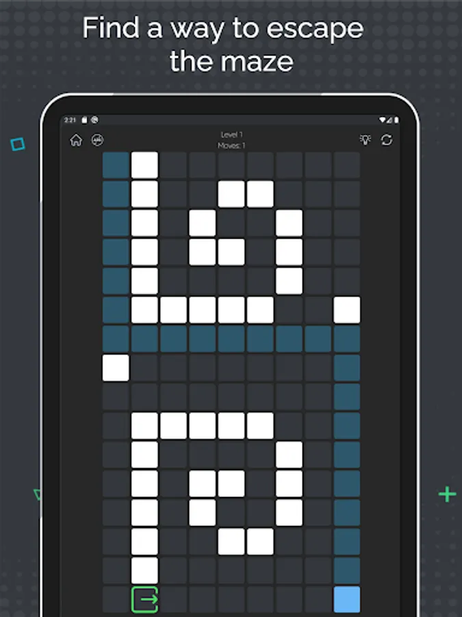 - Simple navigation: swipe up, down, left or right to move the cube to the exit;