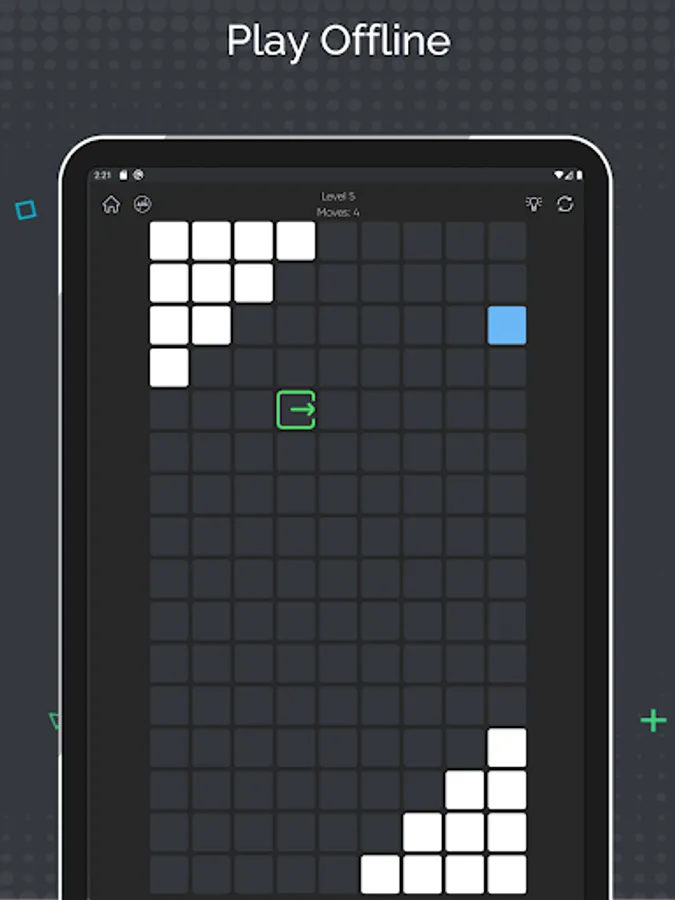 - This free and offline puzzle game includes dozens of levels.