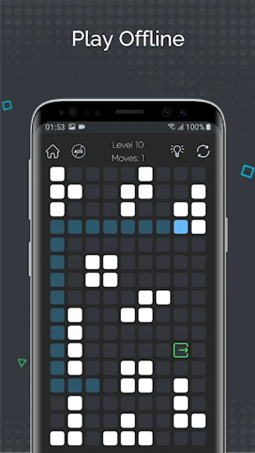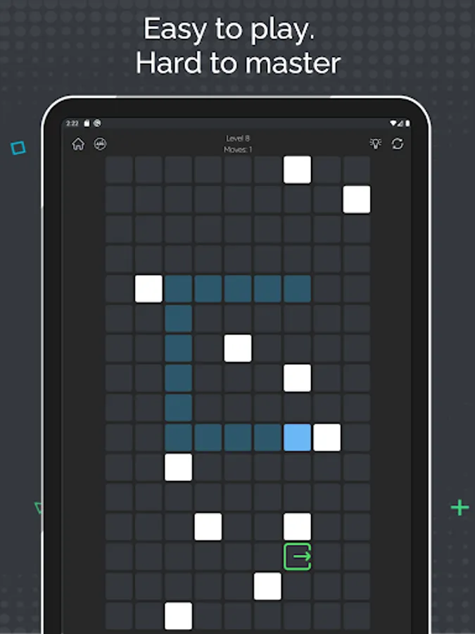 Start with simple levels that can be completed in a few swipes and move to the harder ones with more than ten swipes. This slide puzzle was created for people who want to train their brain and relax at the same time. Forget about boring labyrinth escape and roller splat games! Try a new and challenging sliding game offline