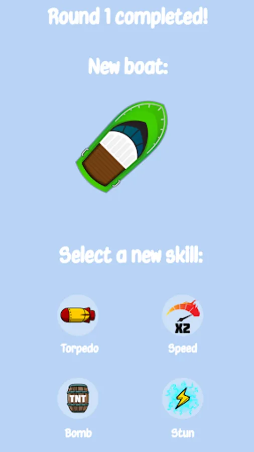 After winning a round, you will have the opportunity to improve your boat and learn one new skill that will help you fight more powerful boats in the next round.