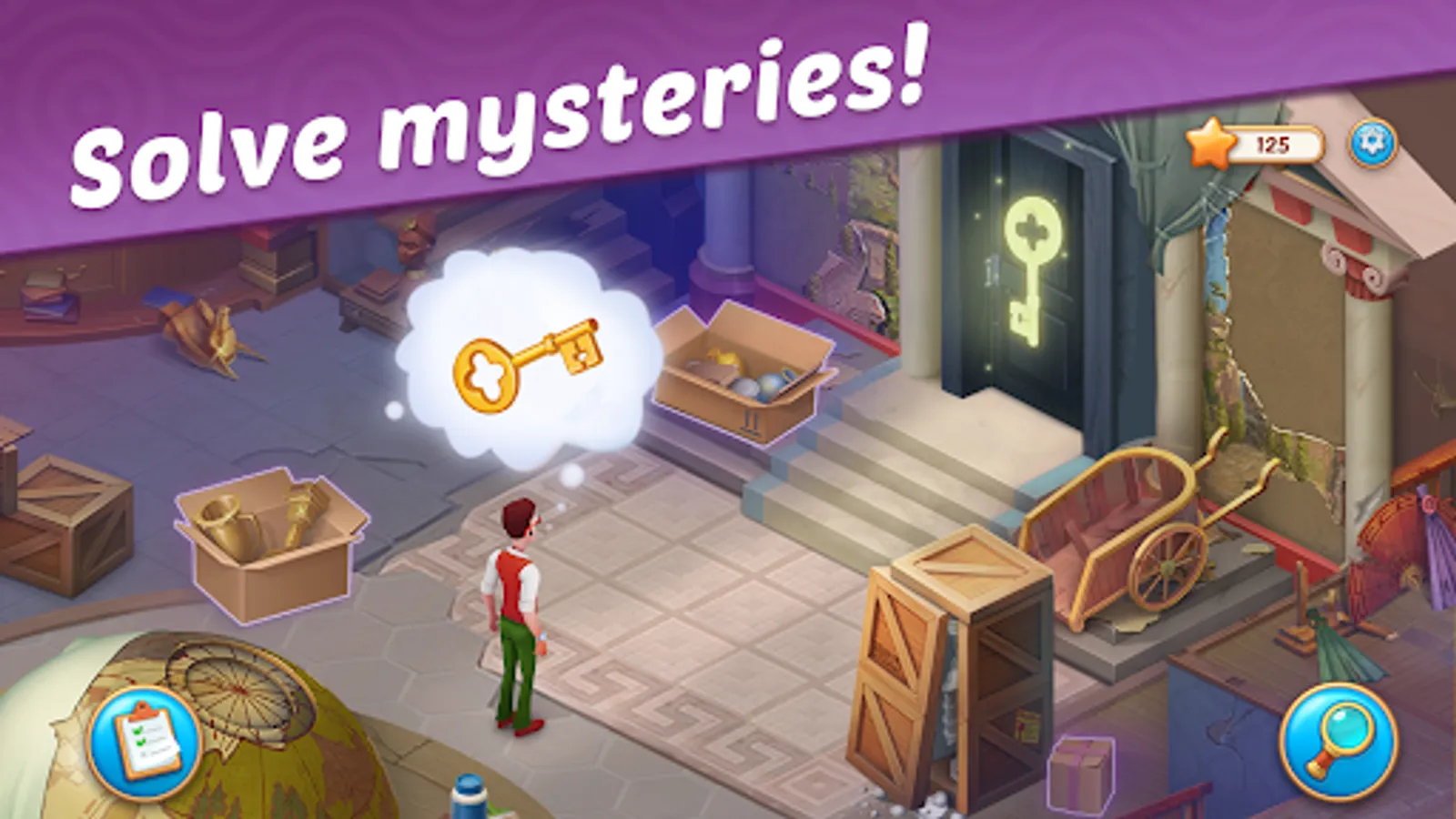 Inspect and renovate rooms, find curious artifacts from all over the world, and unravel the secrets of this thrilling location together with Carl, your charming assistant! Are you ready to step inside? They left the door open for you… come on in!