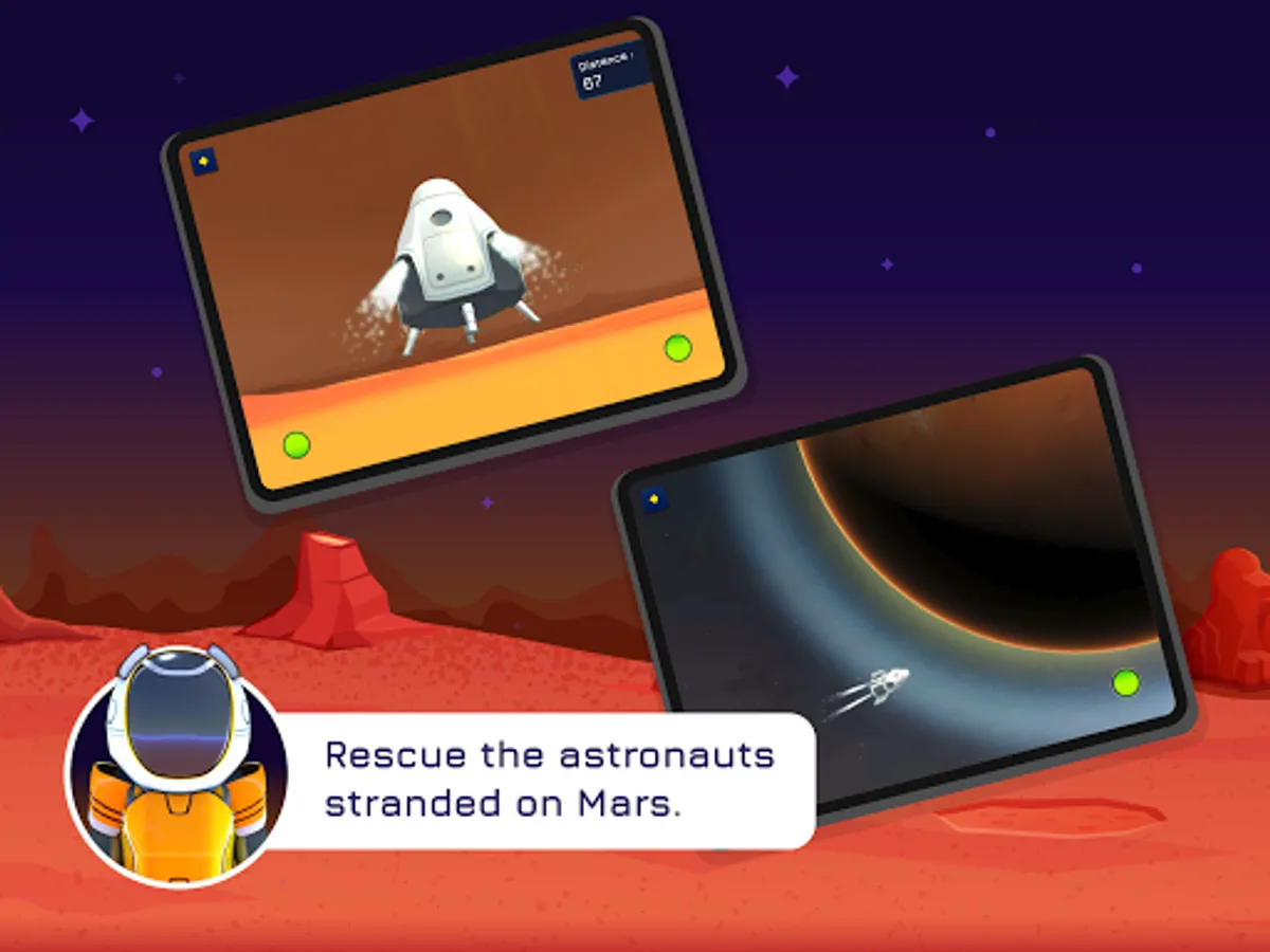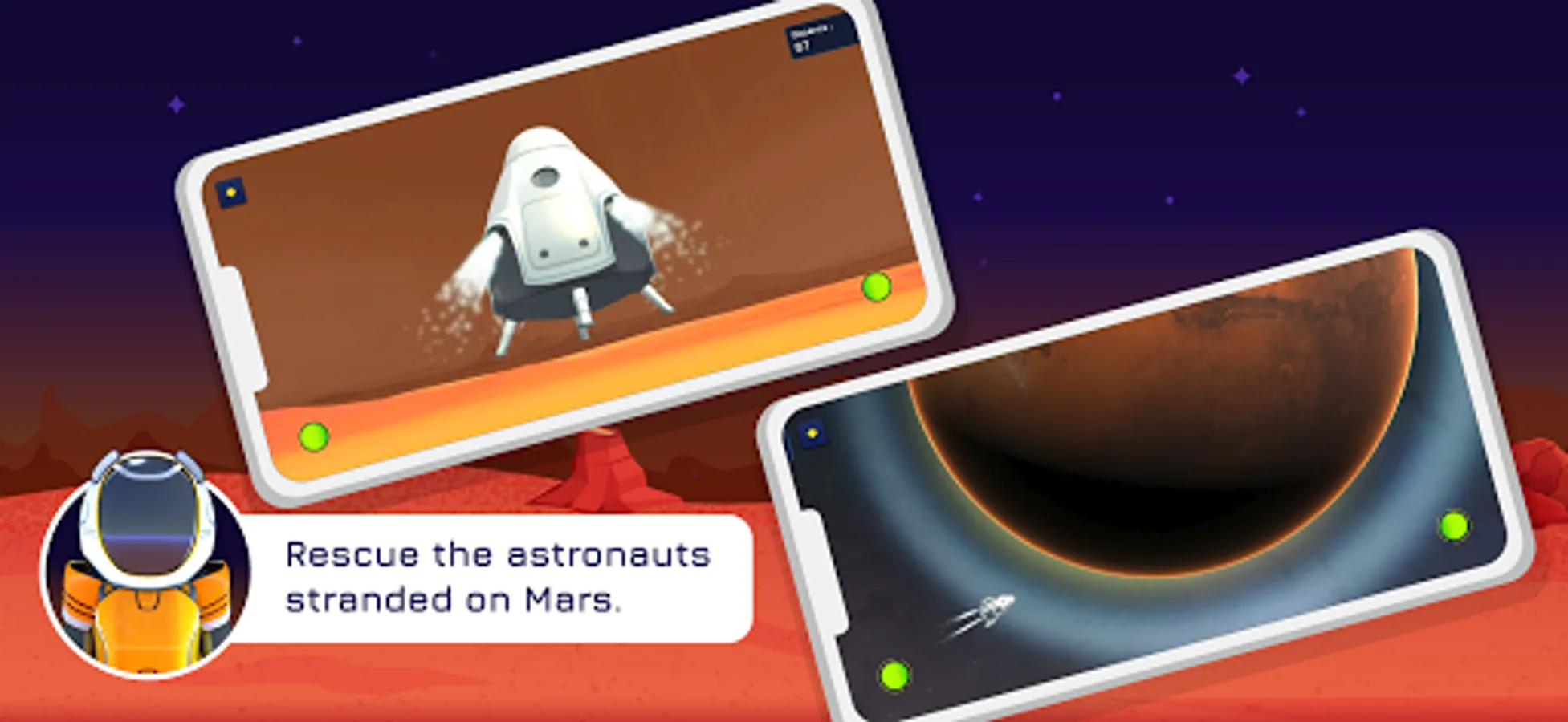 Go on your own adventure and experience the thrill of a space rescue - navigate a spacecraft, dodge obstacles, reach Mars, and rescue the stranded astronauts!