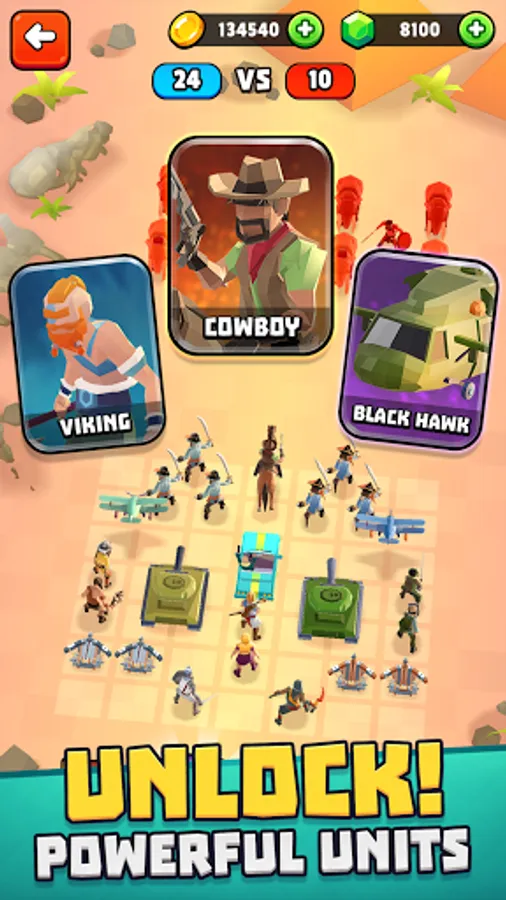 In Battle Simulator : Warfare, each unit fights differently and comes with their own unique abilities - no battle is ever the same as you upgrade, customise, and build your army to take on challenging fights across the ages!