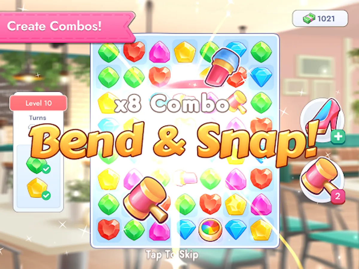 Hundreds of Match-3 levels to beat, with awesome and unique bonus tiles, obstacles, and more! The more you play, the more you earn!