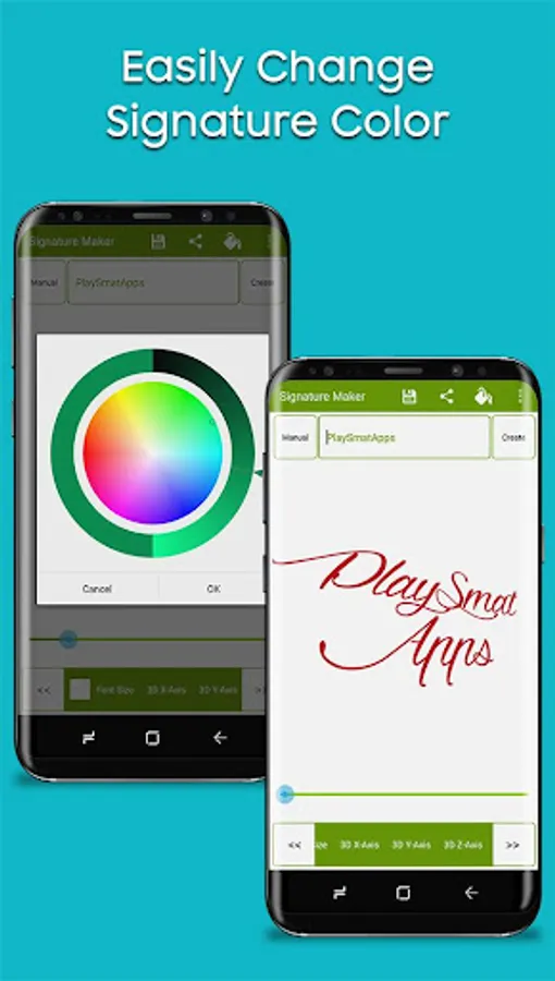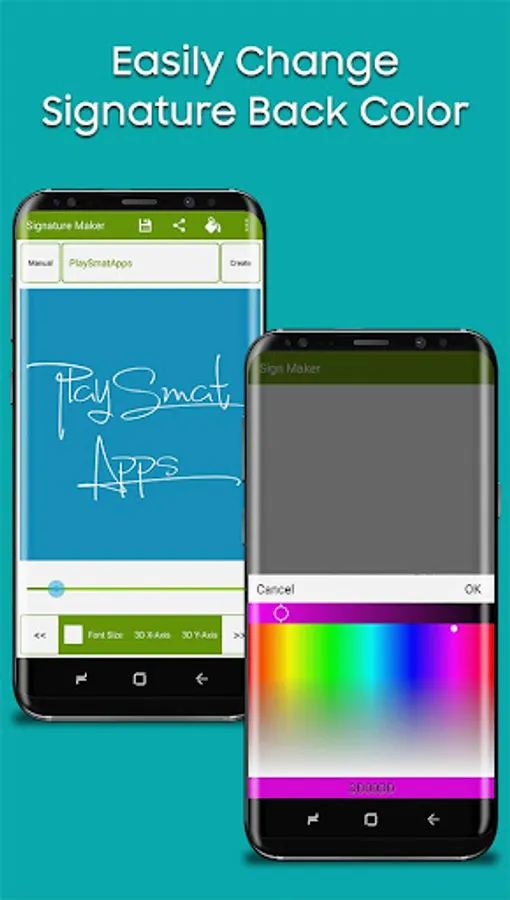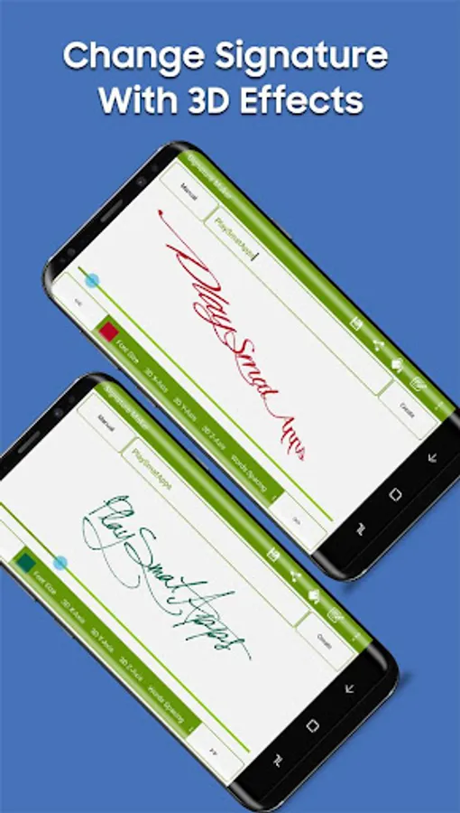 ✔ If you want to make a paint or handwriting signature Click/Tap on the manual button, choose color along with pen size, and then paint/draw your signature.