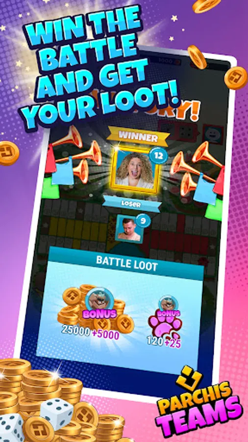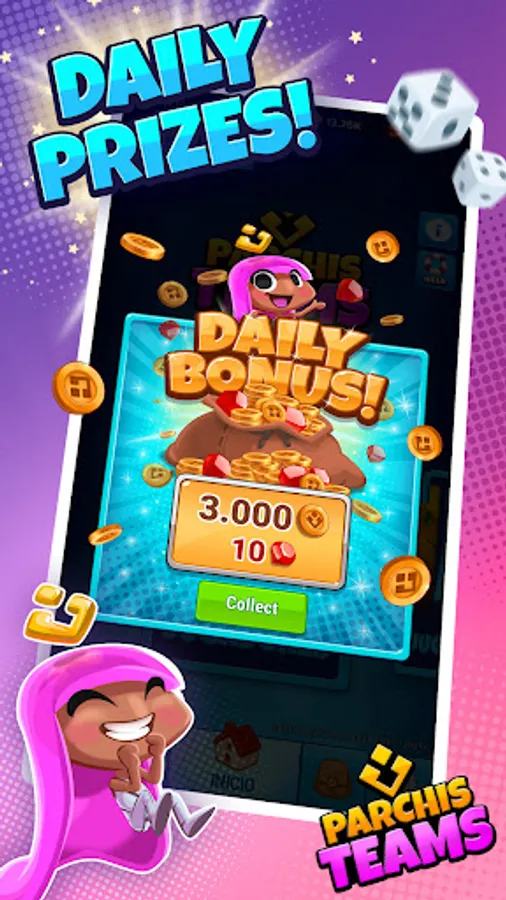 Collect free coins and credits every day to play as many games as you want. Don't forget to collect the daily bonus. In Playspace Parchis TEAMS you can win amazing virtual prizes that you can share with your friends.