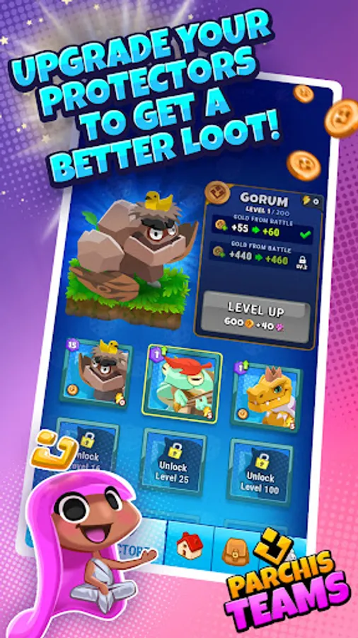 Protectors will give you exclusive advantages that will allow you to get more loot. Upgrade your protectors for higher rewards.