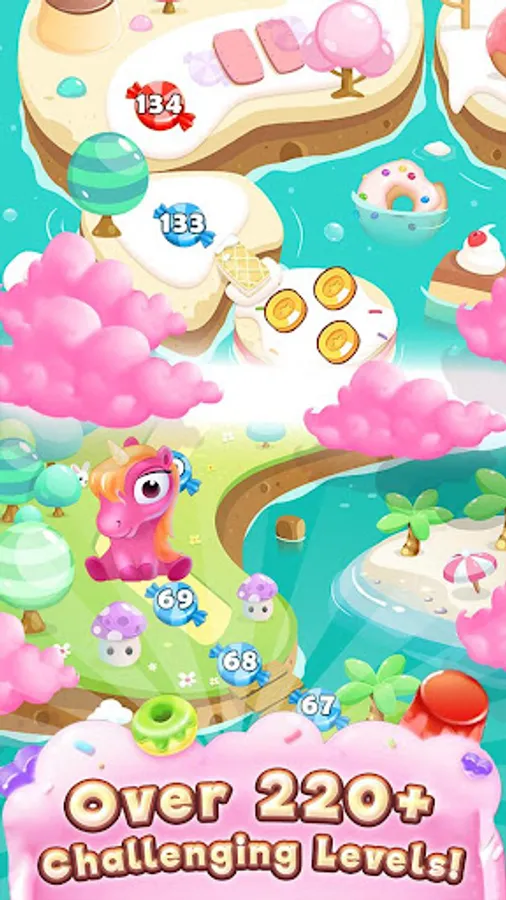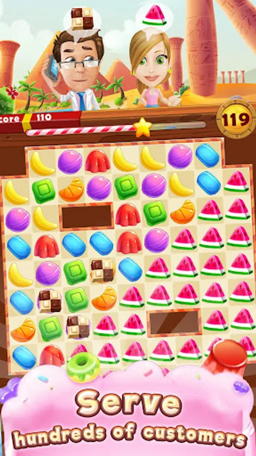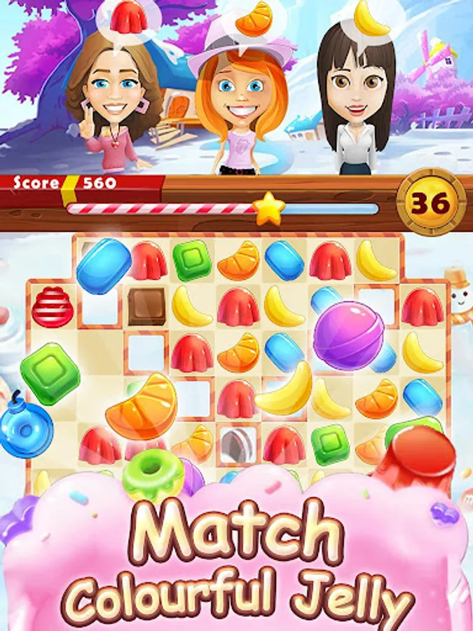 Journey through loads of different levels and dozens of different challenges to free trapped jellies, collect desserts and deliver customers orders.