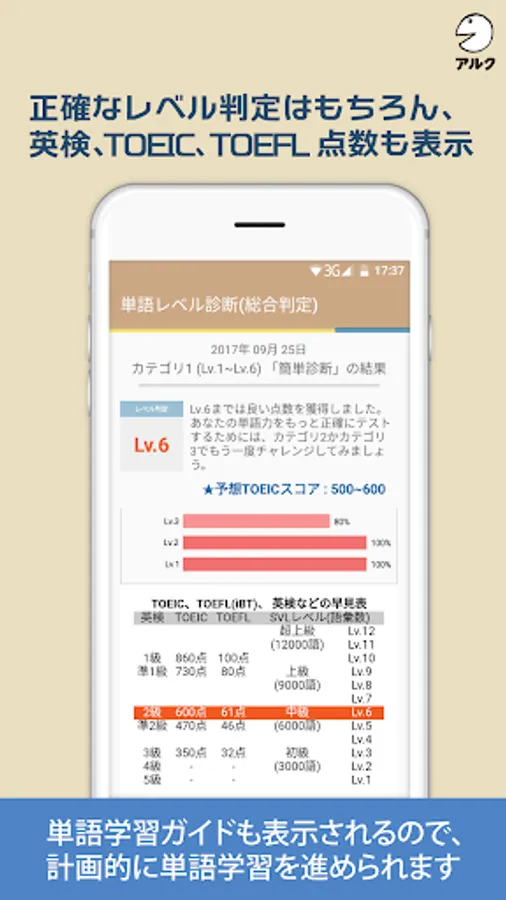 Accurate level decision, of course, Eiken, TOEIC, will also be displayed until a guide number of TOEFL.