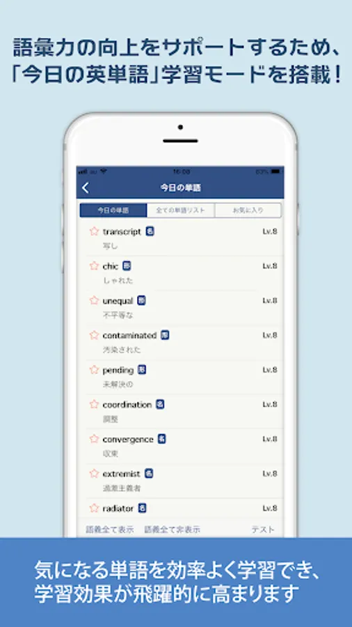 ・ Based on the diagnostic results, you can learn 10 vocabulary words that are suitable for your vocabulary level every day.