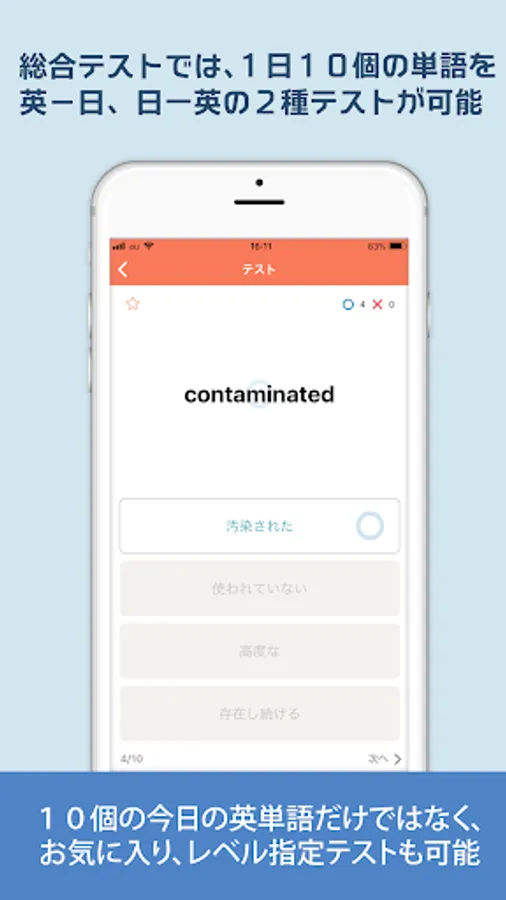 ・ You can choose from English -> Japanese, Japanese -> English question format to study in various styles.